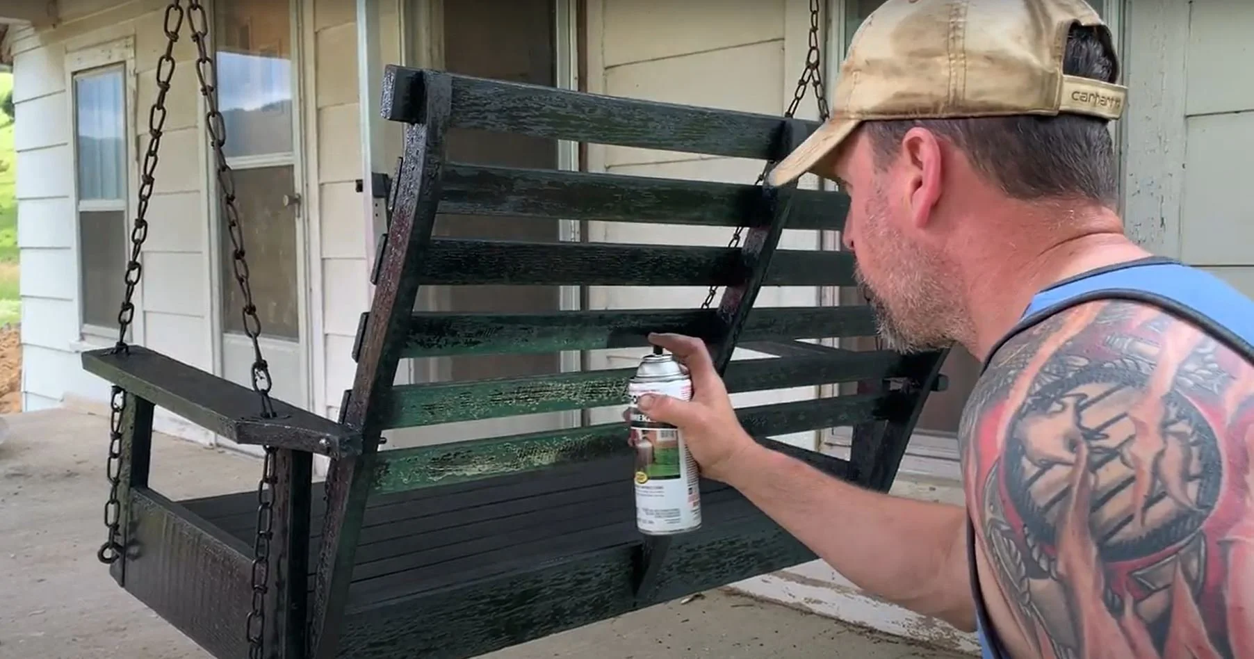…and we even made time to put a couple coats of paint on the old porch swing (I scraped the old paint off and sanded it down beforehand)!